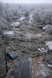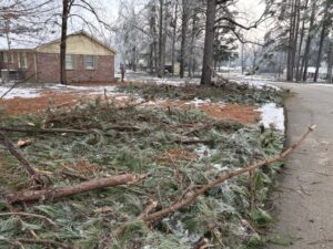 We’d been told to get emergency supplies. I had a powerful rechargeable flashlight. A friend with gas for heat and cooking, took me in. All businesses closed. I support Samaritan’s Purse at times. They are here doing a great job. The National Guard is in place. Utility linemen from other states will replace 200 additional utility poles before power can be restored. Roads must be cleared from two inches of solid ice plus fallen tree and branch debris everywhere. I’m impressed by how beautifully people are helping each other.