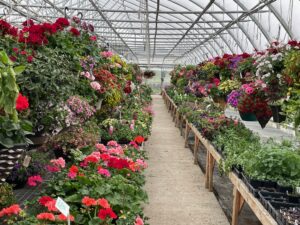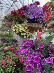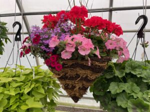 Spring is slow to arrive in Minnesota. When I drive north from Mississippi, it’s like I’m reversing the calendar in slow motion. I leave abundant scarlet amaryllis and fragrant roses in my Mississippi yard. By the time I reach Minnesota, homeowners are glad to welcome daffodils and tulips. Mother’s Day used to be the date to plant gardens outside, but everything was two weeks’ late this year. Even so, in this central Minnesota location, flowerbeds flourish and burst with color overnight once hanging pots dangle from upright shepherd poles or hooks on porches and eaves. The secret is Amish greenhouses.